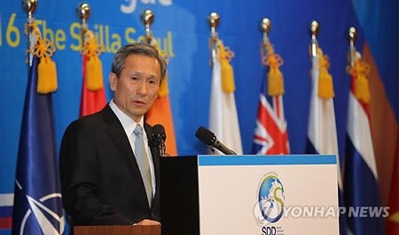 Bộ trưởng Quốc phòng Hàn Quốc Kim Kwan-jin phát biểu khai mạc diễn đàn SDD năm 2012. |