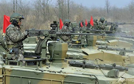 | Binh sĩ Hàn Quốc tập trận trên xe tăng K-2. Ảnh minh họa. |