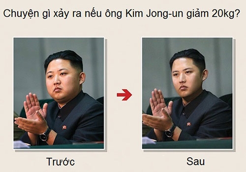 Trên hình ảnh lan truyền trên Facebook là tấm hình ông Kim Jong-un trước và sau khi giảm cân. Có thể thấy những dấu hiệu của cân nặng đã được loại trừ và giúp khuôn mặt Kim Jong-un gọn gàng, thanh thoát hơn.
