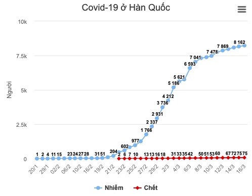 Tính đến 16/3, Hàn Quốc đã xét nghiệm khoảng 250.000 người, tức là cứ khoảng 200 người dân thì một người được làm xét nghiệm, cao hơn nhiều so với Mỹ và châu Âu.