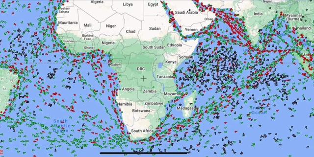 Đồng quan điểm, chuyên gia phân tích Peter Sand của BIMCO nhận định hàng loạt các tàu hàng đang chuyển hướng gấp giữa Đại Tây Dương để hướng đến mũi Hảo Vọng nhằm tránh ách tắc trên kênh đào Suez.
