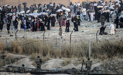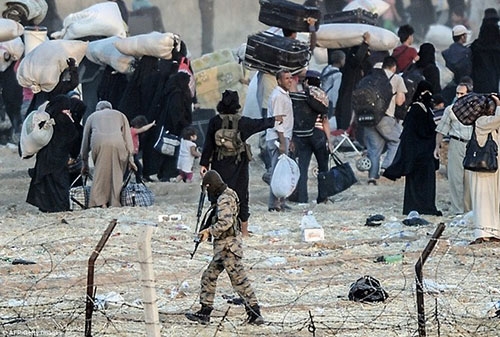 Hàng nghìn người dân Syria kéo đến biên giới Thổ Nhĩ Kỳ để chạy trốn Nhà nước Hồi giáo tự xưng (IS). Tuy nhiên, các chiến binh IS đón lõng dòng người tị nạn và buộc họ quay về.