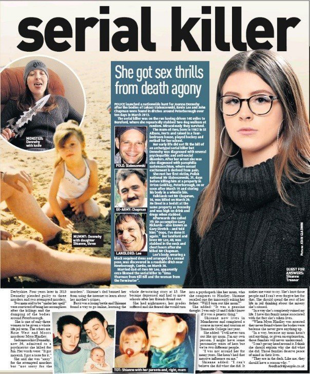 Thế nhưng sau năm 15 tuổi, thiếu nữ này đột ngột biến đổi tâm tính theo hướng bạo lực. Ả thích gây sự, chửi rủa người khác, cuối cùng táng tận lương tâm giết người. Vào năm 2013, ả đâm chết 3 người đàn ông, vứt xác họ xuống mương Peterborough.