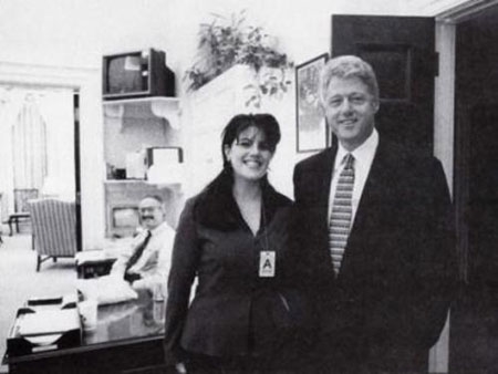 | Ảnh chụp Monica Lewinsky và ông Bill Clinton hồi 1995. Ông Clinton lúc bấy giờ là Tổng thống Mỹ - Ảnh: Reuters |