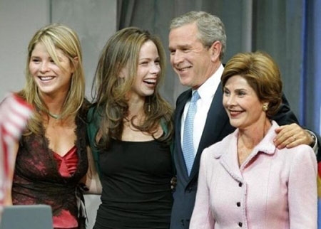 | Vợ chồng ông George W. Bush và hai cô con gái - Ảnh: Reuters |