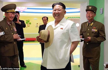 Ông Kim Jong Un ghé thăm một nhà trẻ mới được khánh thành (Ảnh: Daily Mail) |