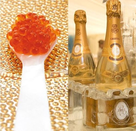 Ông Kim Jong-un được cho là rất thích ăn trứng cá thượng hạng (trái) và uống rượu sâm panh Cristal (phải) (Ảnh: Daily Mail) |