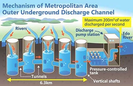 | Hệ thống thoát nước này của Nhật Bản là một công trình khổng lồ mà chưa có nơi nào khác trên thế giới xây dựng được. |