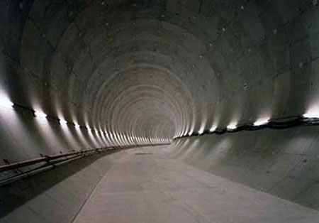 | Máy khoan đường hầm dưới lòng đất có đường kính khoảng 10m, được sử dụng trong quá trình thi công công trình này. |