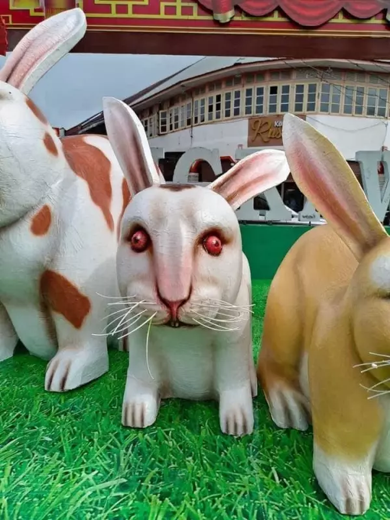 Mới đây, một địa điểm ở Indonesia khiến dân tình hết hồn khi xây dựng những chú thỏ theo phong cách đầy mới mẻ. Theo đó, thay vì dáng vẻ dễ thương thì những chú thỏ trắng này lại mang đôi mắt đỏ rực như "thiêu đốt" người nhìn. Dáng vẻ này khiến nhiều người liên tưởng đến hình tượng zombie chuyên "ăn tươi nuốt sống" trong các bộ phim.