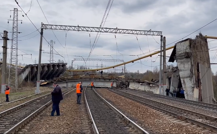 Cây cầu Paninsky, nằm ở thị trấn Vyazma, kết nối hai khu dân cư cách nhau bởi một tuyến đường sắt. Những hình ảnh và đoạn video ghi lại từ hiện trường cho thấy, đoạn cầu bị sập vỡ thành nhiều mảnh rơi xuống đường.