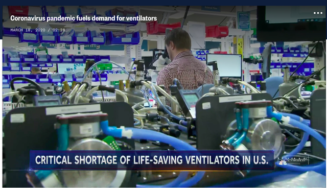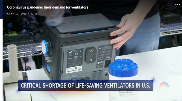 Hệ thống y tế ít quan tâm đến việc hết giường ICU (chăm sóc tích cực) hơn là thiếu hụt máy thở, ông Battinelli nói. Các máy thở cung cấp oxy được sử dụng cho những bệnh nhân ốm yếu nhất.