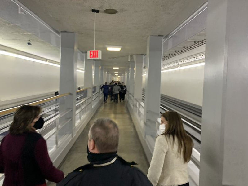 Theo hãng tin RT, các nhân viên đã được cho phép trở lại bên trong qua các đường hầm dưới lòng đất. Cảnh này đã được phóng viên Garrett Haake của NBC chụp lại và chia sẻ trên mạng xã hội Twitter.