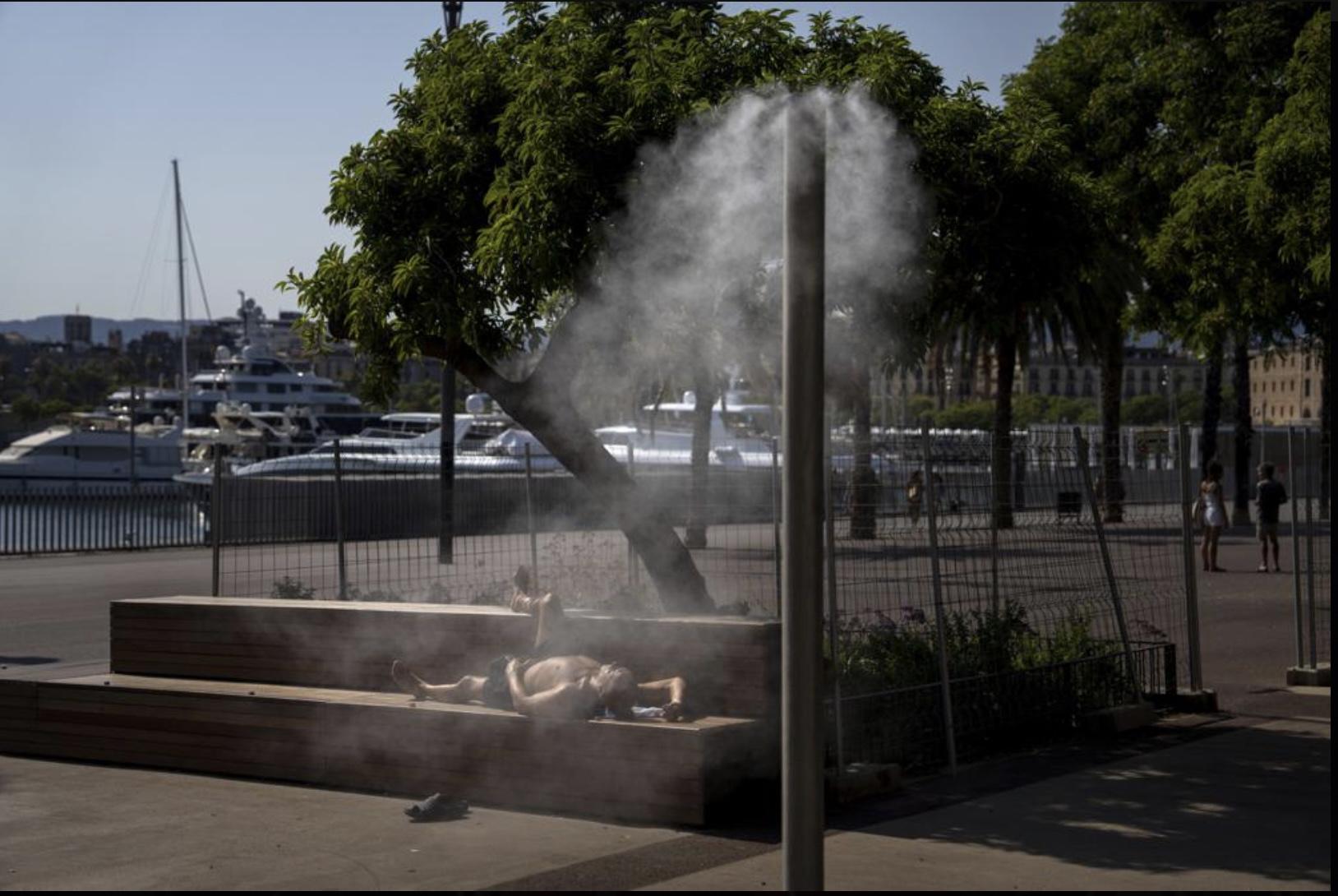 Ở cuộc đua Tour de France, các vận động viên gắn túi nước đá dưới quần áo để chống chọi với thời tiết. Trong khi đó, các bãi biển ở phía tây nam Pháp bị khói từ các đám cháy rừng bao phủ dày đặc.