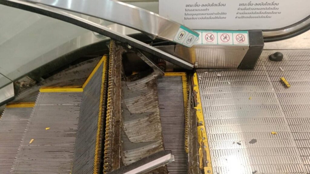 Theo Khaosod, thang cuốn tại một trung tâm thương mại ở đường Rama IV ở thủ đô Bangkok (Thái Lan) đã bất ngờ bị hư hỏng nặng. Được biết, chiếc thang cuốn gặp vấn đề nằm ở khu vực tầng 2. Phần đầu của chiếc thang cuốn này đã bị lồi lên hẳn so với mặt sàn, lộ ra nhiều đất đá ở bên dưới.