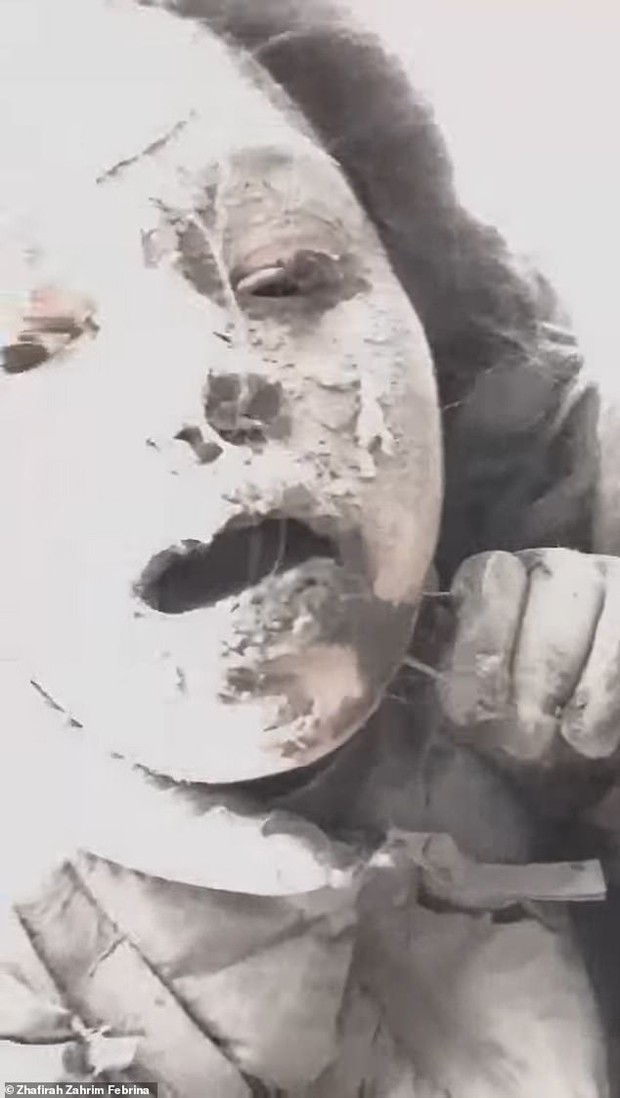 Vẫn chưa hết hoảng loạn sau vụ việc, Zhafirah Zahrim Febrina xuất hiện trong hình ảnh thảm hại, khi tro bụi của núi lửa phủ kín cơ thể cô từ chân lên đầu sau chuyến leo núi kinh hoàng. Tuy nhiên, cô gái 19 tuổi vẫn nằm trong số những người may mắn sống sót sau đợt phun trào hôm 3/12.