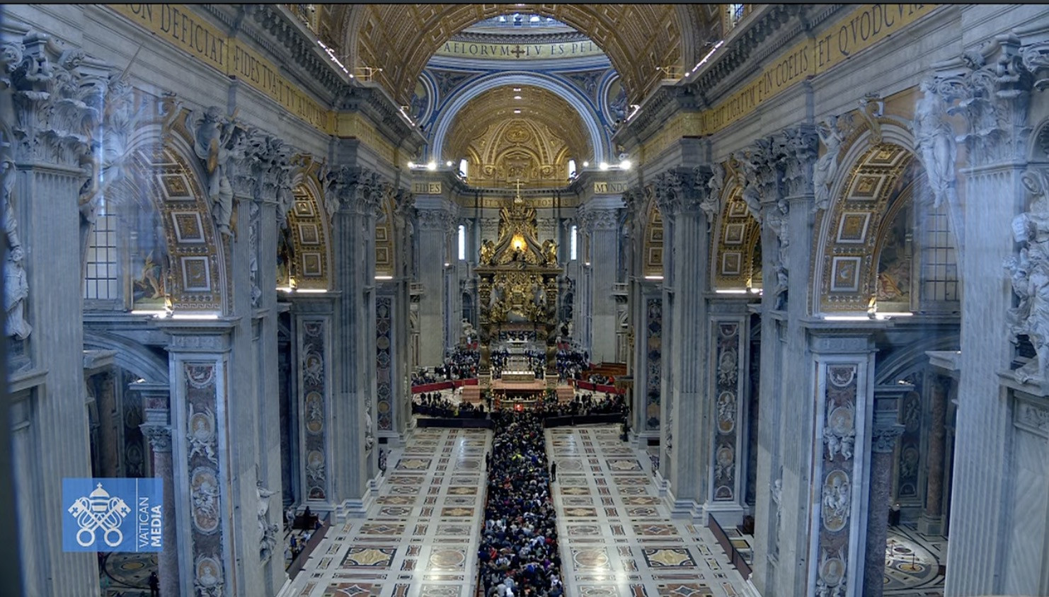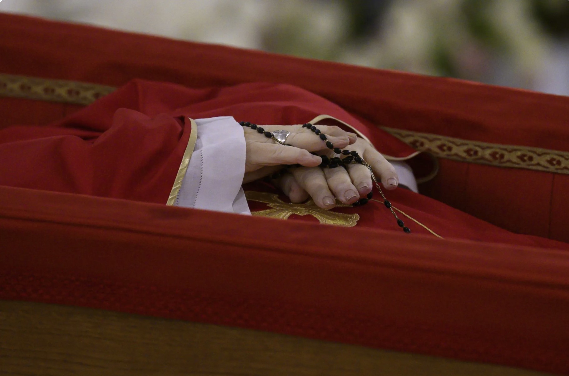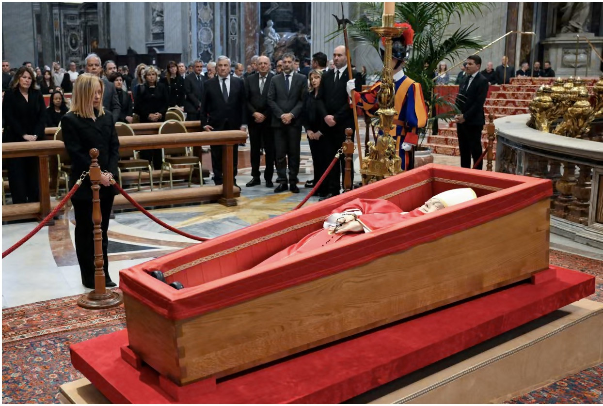 Theo BBC và The Guardian, chiếc quan tài gỗ đơn giản, để mở, chứa di hài Giáo hoàng Francis được đặt nằm trên bàn thờ chính tại Vương cung Thánh đường Thánh Peter. Linh cữu của ông sẽ được quàn tại đây tới thứ Sáu (25/4).