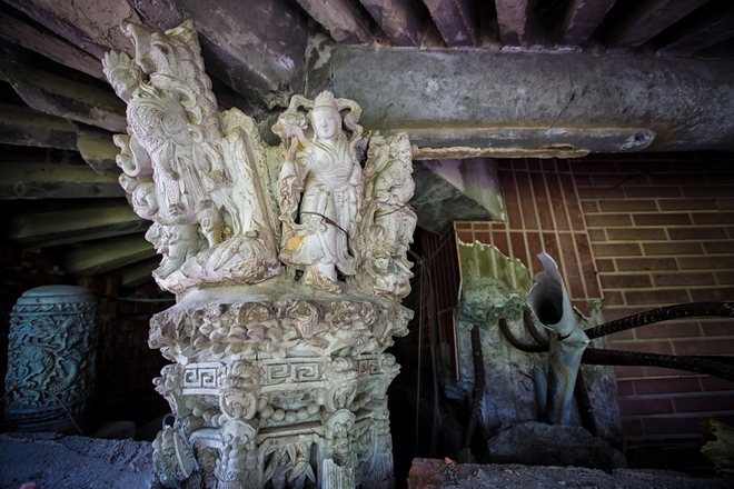 Những mái vòm, tượng thần, linh vật trên mái nhà vẫn được giữ nguyên vẹn. Những cây cột bị uốn cong lộ ra lõi sắt bên trong vẫn cố chống đỡ. Từ đống vụn nát, những dây leo vẫn trỗi dậy uốn quanh, tựa như mầm sống vẫn vươn lên từng ngày, tựa một sự tái sinh đẹp đẽ sau thảm hoạ tàn khốc.