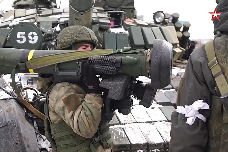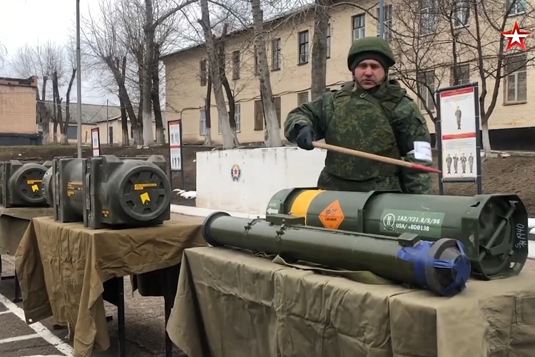 Hình ảnh được kênh quân sự Zvezda TV công bố hôm nay (16/3) cho thấy, các tên lửa chống tăng như Javelin xuất xứ từ Mỹ, N-LAW của Anh bị tịch thu từ những kho vũ khí của quân đội Ukraine, đã được binh sĩ Nga chuyển giao cho lực lượng vũ trang của hai nước cộng hòa tự xưng Donetsk (DPR) và Lugansk (LPR).