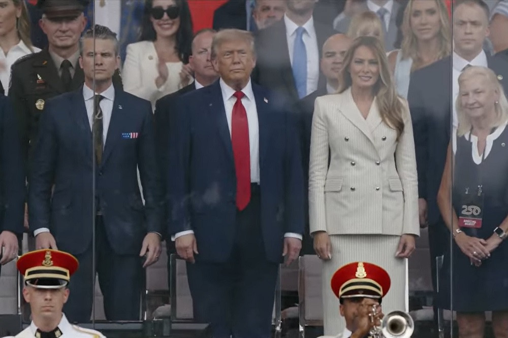 Tổng thống Mỹ Donald Trump cùng vợ và nhiều quan chức dự lễ duyệt binh. Ảnh: Nhà Trắng