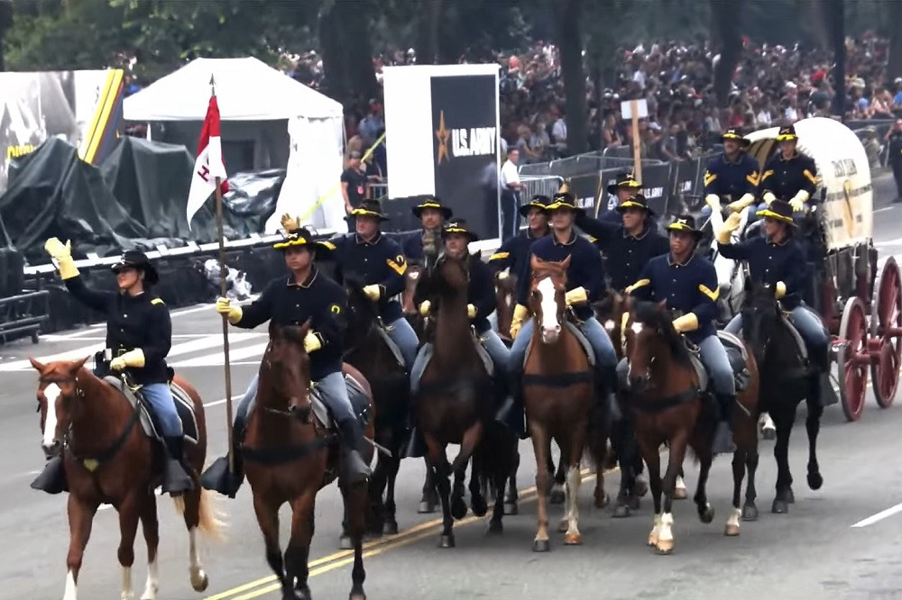 Theo truyền thông Mỹ, cuộc duyệt binh kỷ niệm 250 năm ngày thành lập Lục quân Mỹ có sự tham gia của 6.600 binh sĩ, 150 khí tài hạng nặng gồm xe tăng M1A1 Abrams, xe tăng M4 Sherman từ Thế chiến II, xe chiến đấu Bradley, pháo tự hành Paladin, xe bọc thép Stryker, các trực thăng CH-47, UH-60, AH-64 Apache, máy bay P-51…