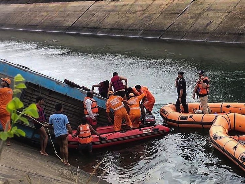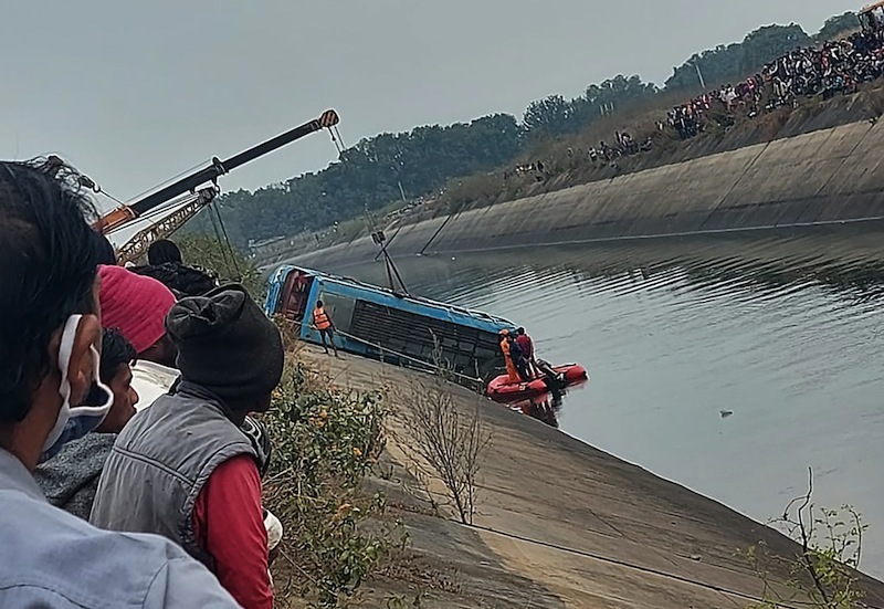 Tai nạn xảy ra khi chiếc xe buýt chở quá nhiều người lao khỏi một cây cầu ở miền trung Ấn Độ và đâm sầm xuống con kênh bên dưới.