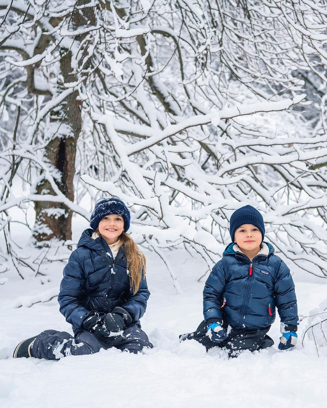 Trong loạt ảnh này, 1 nhân vật đặc biệt khác cũng góp mặt chính là cô chị cả - Công chúa Estelle (9 tuổi). Hai thành viên trẻ tuổi của gia tộc mặc áo khoác và mũ mùa đông cùng nhau chơi đùa ngoài trời tuyết trắng xoá. Cả hai chị em đều rất nổi bật, khiến công chúng không khỏi xuýt xoa về thần thái hơn người của những nhân vật sẽ kế vị trong tương lai.