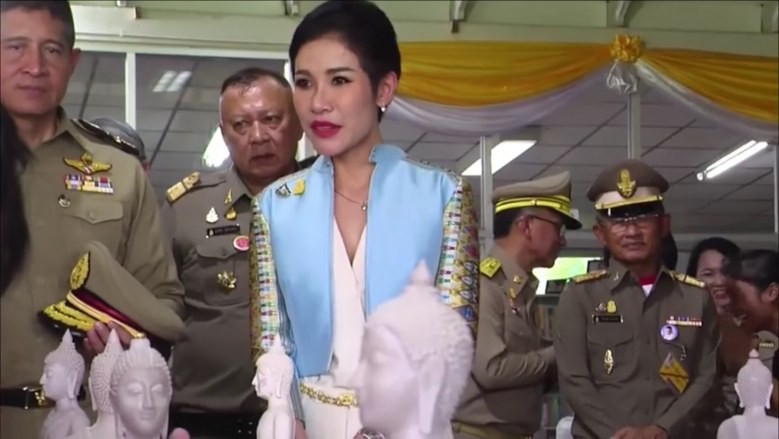 Bà mặc quần trắng, áo trắng và một chiếc áo khoác màu xanh có thiết kế cầu kỳ ở bên ngoài, thể hiện cá tính riêng của mình. Kể từ khi được sắc phong đến nay, đây là dịp hiếm hoi Hoàng quý phi xuất hiện trên truyền thông, tham gia sự kiện một mình thay vì đi cùng Quốc vương Thái Lan.