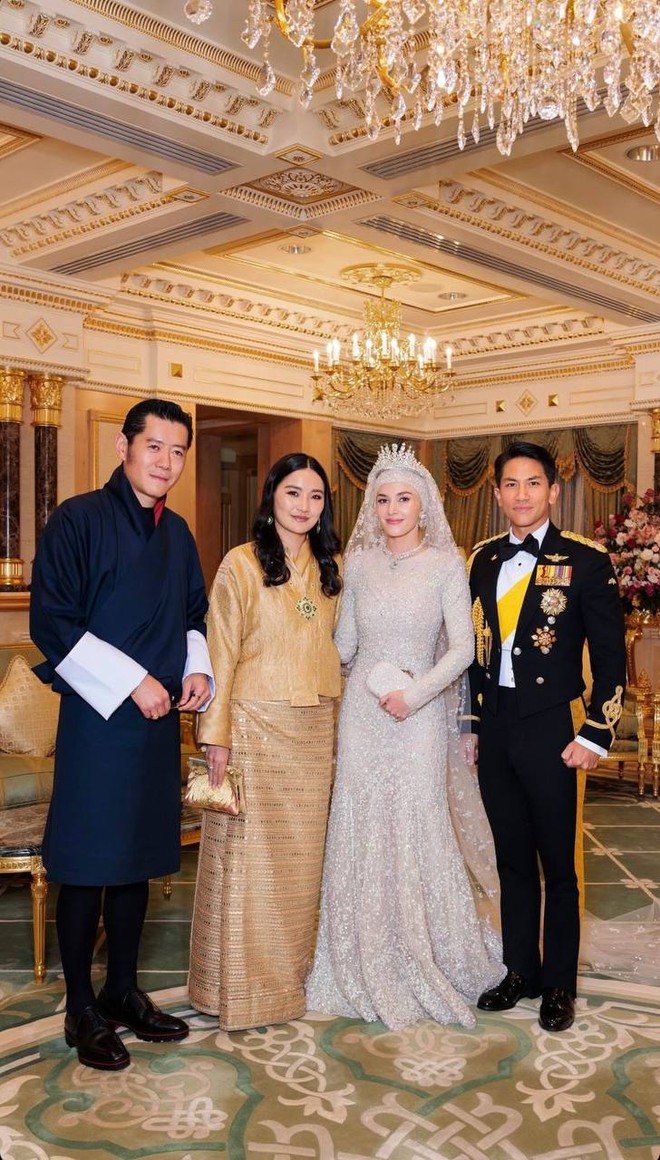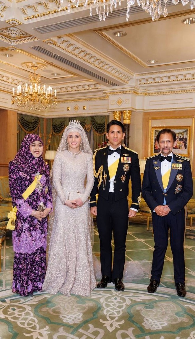 Tại các buổi lễ này, cặp đôi hoàng gia mới cưới luôn gây ấn tượng khi xuất hiện trong loạt trang phục cưới sang trọng. Trong khi Hoàng tử Brunei khoe trọn vẻ đẹp nam tính, cuốn hút của mình trong bộ trang phục truyền thống và quân phục thì cô dâu Anisha lại đẹp xuất sắc trong loạt thiết kế váy cưới lấp lánh, xa hoa đi kèm hàng loạt trang sức đắt giá.