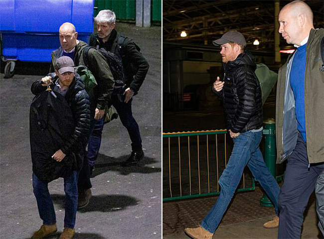 Hoàng tử 35 tuổi mặc quần bò, áo khoác đen và đội mũ lưỡi trai. Công tước xứ Sussex cũng được trông thấy tay cầm một bộ quần áo và đeo một túi xách to. Anh nhíu mày, giơ tay lên che khi phát hiện có cánh săn ảnh bám theo. Công tước xứ Sussex sau đó nhanh chóng lên một chiếc xe Range Rover rời đi.