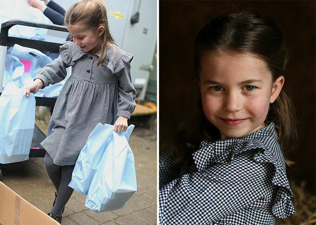 Trong các bức ảnh được chia sẻ, Công chúa Charlotte trông đáng yêu khi mặc váy đen trắng và quần legging xám, đi giày Mary Jane đen. Cô bé gõ cửa nhà một người già với túi đồ ăn trong tay. Một người dân địa phương cho biết rất ngạc nhiên khi thấy nhà Cambridge và nói: "Họ ướt sũng vì trời đổ mưa nhưng họ chẳng nề hà".