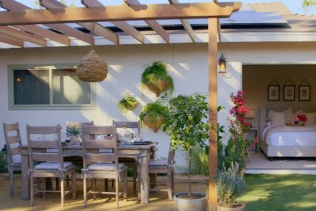 Khu vực sân sau ngôi nhà cũng được tu sửa với giàn che mới để ánh sáng chiếu nhiều hơn vào phòng của Gaby, ngoài ra còn có thêm khu vực ăn uống ngoài trời và một khu vườn tuyệt đẹp.