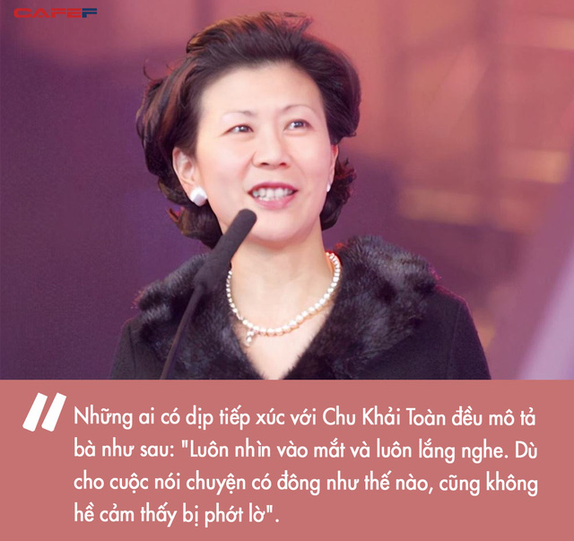 Khi nói về mối quan hệ với Lý Gia Thành và Đổng Kiến Hoa, bà nói: "Tôi không phải là một phần phụ của họ, mà là một người hoàn toàn độc lập". Triết lý kinh doanh của Chu Khải Toàn chính là "đừng coi mối quan hệ là gánh nặng".