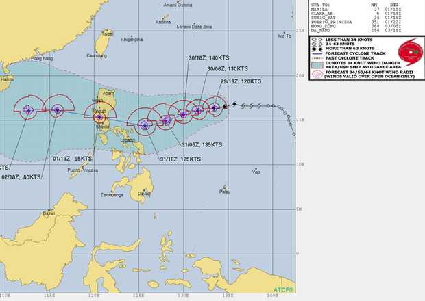 Theo Trung tâm Cảnh báo Bão Liên hợp của Không quân - Hải quân Mỹ (JTWC), bão Goni, đang đi qua phía đông Philippines, sẽ có sức gió duy trì tối đa lên đến 240 km/giờ và gió giật đạt hơn 296 km/giờ vào ngày 31-10.