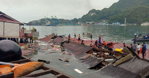 Đoạn video chưa được xác minh trên mạng xã hội cho thấy một tòa nhà bên bến cảng đã đổ sập xuống biển. Trận động đất còn gây thiệt hại nhẹ cho một trung tâm thương mại và bệnh viện ở tỉnh Papua.