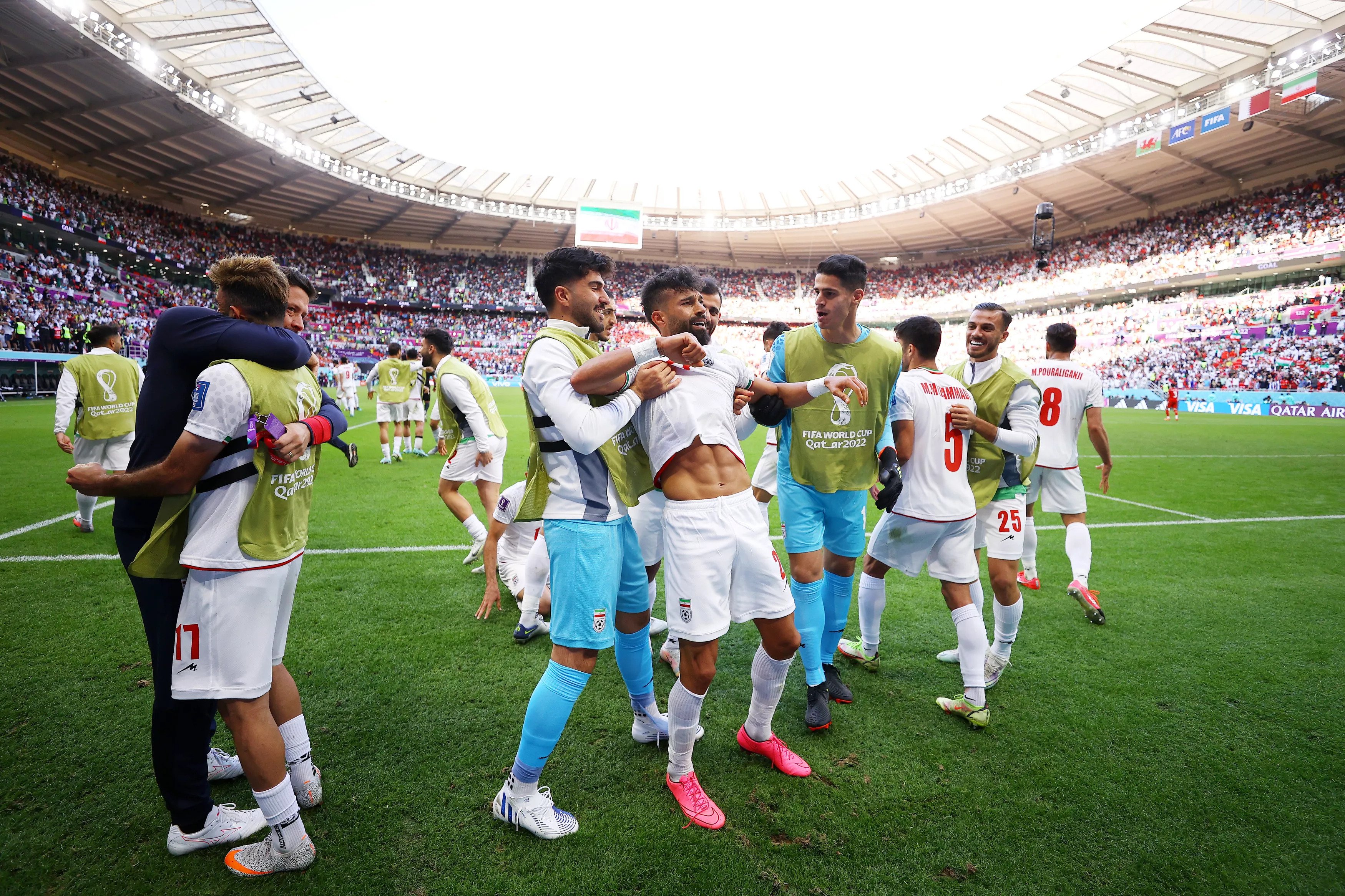 Iran hôm 25/11 ghi hai bàn trong những phút bù giờ cuối trận, đánh bại Xứ Wales để tiếp tục nuôi hy vọng lọt vào vòng knock-out ở World Cup. Trước đó ở trận mở màn, họ thua Anh với tỷ số 2-6.