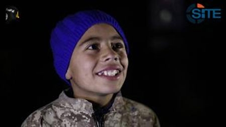 | Đứa trẻ khoảng 8 tuổi mỉm cười trong đoạn video của IS. Ảnh: Twitter |