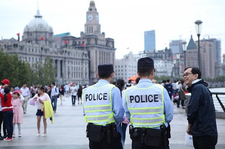 | Cảnh sát Trung Quốc tuần tra ở TP Thượng Hải. Ảnh: CCTV |