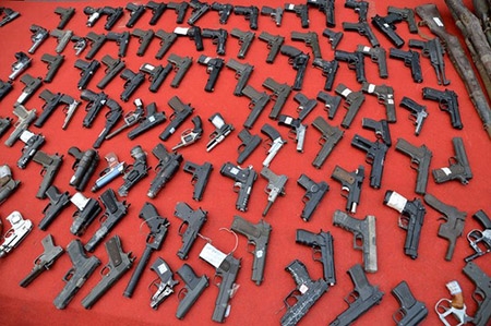 | Súng bị tịch thu ở TP Hàm Đan, tỉnh Hà Bắc - Trung Quốc. Ảnh: CCTV |