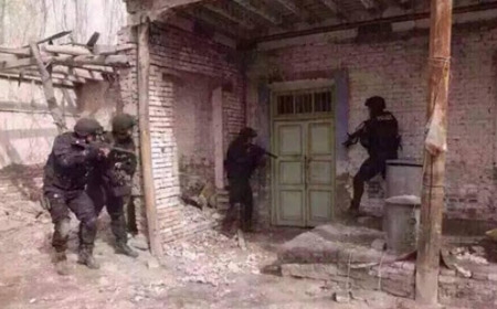 | Cảnh sát Tân Cương trong một lần truy bắt "khủng bố". Ảnh: SCMP |