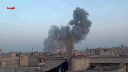 Nhà nước Hồi giáo tự xưng IS ngày 01/11 đã chiếm được thị trấn Maheen ở tỉnh Homs, miền trung Syria, với sự trợ giúp của phiến quân địa phương. Đây là hình ảnh chụp từ đoạn video đăng tải trên Talbisseh Youtube Channel hôm 15/10 cho thấy cột khói bốc lên ở Talbisseh, gần Homs sau khi bị không kích. |