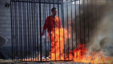 Trên mạng xuất hiện đoạn phim dài 22 phút ghi lại hình ảnh một người đàn ông được cho là viên phi công Jordan, Trung úy Maaz al-Kassasbeh, bị nhốt trong lồng, chìm trong lửa. Trước đó, IS đòi đổi nữ tử tù Sajida al-Rishawi lấy con tin Nhật Bản - người sau đó cũng bị giết hại. Bị kết án tử hình năm 2005 sau khi tham gia đánh bom tự tử tại thủ đô Amman của Jordan nhưng không thành, Rishawi hôm qua bị treo cổ lúc rạng đông. Jordan cũng hành hình một chỉ huy cấp cao của al-Qaeda tên là Ziyad Karboli, bị kết án tử hình năm 2008. Viên phi công Kassasbeh bị IS bắt hồi tháng 12/2014 khi chiếc F-16 mà anh này điều khiển gặp nạn ở đông bắc Syria.