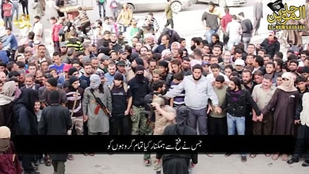 Phiến quân thuộc tổ chức Nhà nước Hồi giáo (IS) vừa tung đoạn băng quay cảnh hàng trăm tín đồ của tổ chức này giẫm đạp 3 lính Syria tới chết rồi dùng xe máy kéo lê xác họ trên phố.