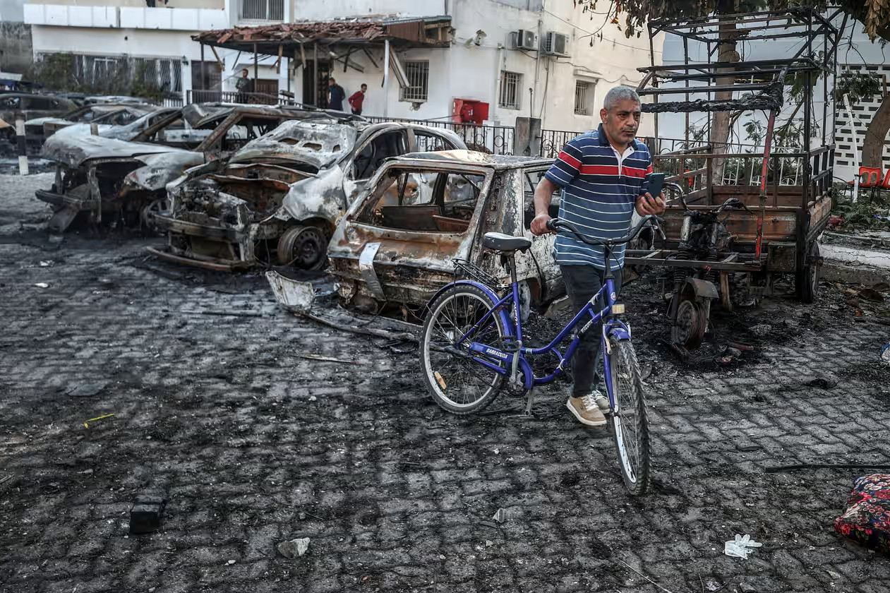 Sử dụng các hình ảnh chụp một số phương tiện trong bãi đậu xe của bệnh viện bị hư hại do vụ nổ ngày 17/10, phát ngôn viên IDF nhấn mạnh, hỏa hoạn đã bùng phát tại cơ sở này do việc phóng tên lửa thất bại của nhóm tự xưng Thánh chiến Hồi giáo.