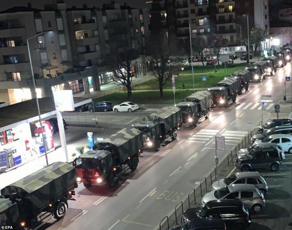 Đoàn xe chở 61 thi thể tới các khu vực hỏa táng tại 12 thị trấn ở Italy, trong đó có Modena và Parma, theo Corriere Della Sera.