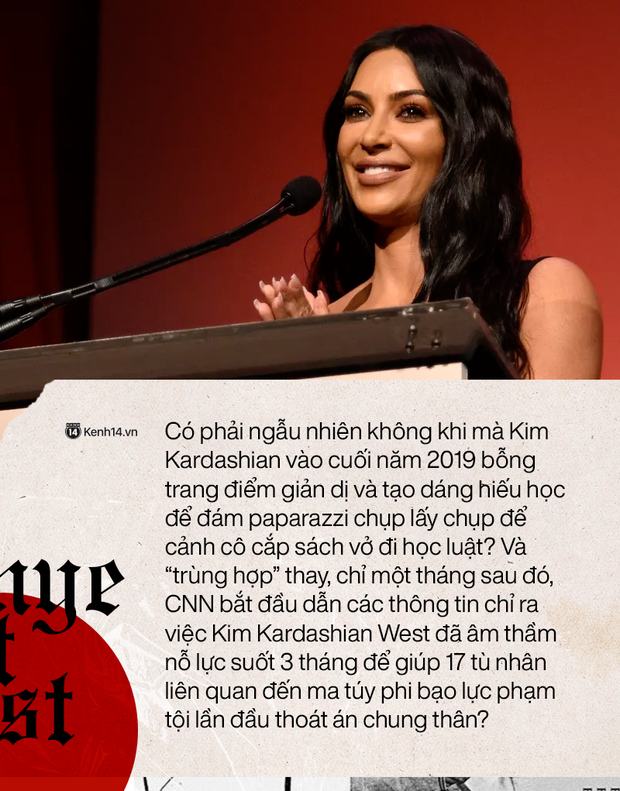 Kanye West và bộ sậu truyền thông của mình (được hậu thuẫn mạnh mẽ bởi nhà Kardashian) đã có những chuẩn bị kỹ lưỡng cho dòng hashtag kể trên, mặc cho kế hoạch của họ bị đẩy lên sớm tới 4 năm. Có phải ngẫu nhiên không khi mà Kim Kardashian vào cuối năm 2019 bỗng trang điểm giản dị và tạo dáng hiếu học để đám paparazzi chụp lấy chụp để cảnh cô cắp sách vở đi học luật? Và “trùng hợp” thay, chỉ một tháng sau đó, CNN bắt đầu dẫn các thông tin chỉ ra việc Kim Kardashian West đã âm thầm nỗ lực suốt 3 tháng để giúp 17 tù nhân liên quan đến ma túy phi bạo lực phạm tội lần đầu thoát án chung thân? Hoạt động của Kim Kardashian West ban đầu được cho là để vớt vát danh tiếng của ông chồng vạ miệng sau đó được ghi nhận là “đóng góp quan trọng cho dự án ‘90 ngày tự do’ thuộc Đạo luật cải cách tư pháp First Step Act được chính ông Trump ký vào năm 2018, cùng năm mà Kanye West bắt đầu đặt mối quan hệ thân mật với ông chủ Nhà Trắng đương nhiệm - theo một số nguồn tin như TIME hay CBS.