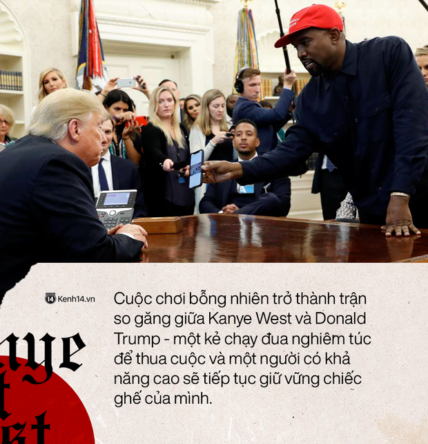 Thế nhưng, giờ đây, Kanye West đã gia nhập phòng chat kể trên và làm cuộc chơi thú vị hơn nhiều. Với hậu thuẫn kinh tế từ khoản tiền mà Kim K có được sau khi bán 20% cổ phiếu thương hiệu KKW Beauty, West sẽ trở thành kẻ thú vị thứ hai trong cuộc đua vào Nhà Trắng, ngẫu nhiên khiến ông Biden bị chìm nghỉm giữa báo chí và mạng internet. Cuộc chơi bỗng nhiên trở thành trận so găng giữa Kanye West và Donald Trump - một kẻ chạy đua nghiêm túc để thua cuộc và một người có khả năng cao sẽ tiếp tục giữ vững chiếc ghế của mình.