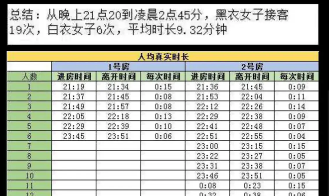 Trong suốt thời gian gần 6 tiếng, từ 21 giờ tới khoảng gần 3 giờ sáng, cô gái áo đen xuống đón tổng cộng 19 người đàn ông, còn cô gái áo trắng thì đón 6 người.