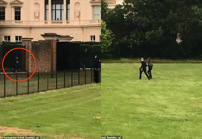 Video được quay từ bên ngoài hàng rào Điện Kensington và chia sẻ hôm 19/6 kèm chú thích: "Theo dõi họ về, tôi nhận thấy cả hai đi rất nhanh và nói đùa chắc họ đang phải về nhà với bọn trẻ. Hóa ra có vẻ tôi đã đúng. Trong video này, các bạn sẽ thấy bóng dáng giống như ba đứa bé nhà Cambridge đang chờ bố mẹ đi làm về".