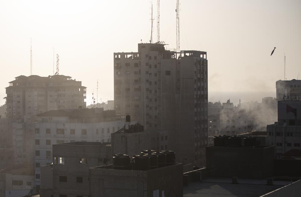 Trên đường phố vắng không một bóng người, các cửa hàng đều treo biển đóng cửa. Hầu như không có gì di chuyển trên đường ngoại trừ xe cứu thương và xe an ninh của Hamas. Tiếng bom nổ vang xa. Những làn khói đen cuồn cuộn từ các tòa nhà bị phá hủy, càng tạo nên một khung cảnh tang thương của một thành phố vốn đã chằng chịt vết sẹo từ các cuộc đụng độ dữ dội năm xưa.
